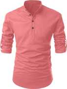 Ladyflock Men Solid Cotton Blend Straight Kurta  (Pink)