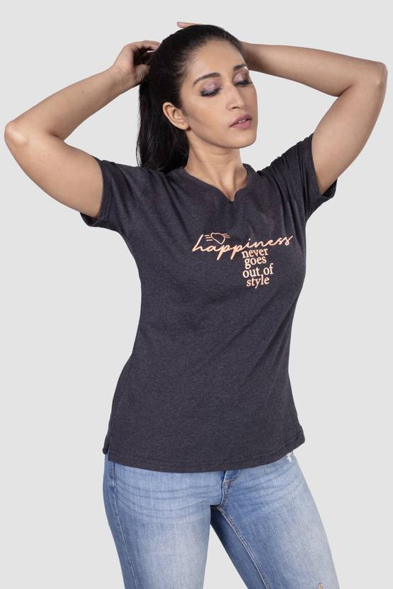 This positive vibes grey cotton tee will add versatility to your wardrobe. Transform this casual grey piece into appropriate evening when you pair it with slim denim jeans and your favourite pumps.