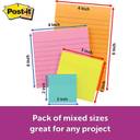Post-it Super Sticky Notes feature 2x the sticking power. This mixed size pack is great for planning a project or getting organized. Use for lists, notes and reminders on doors, windows or walls. Unique adhesive reliably sticks and re-sticks so your message can stay front and center. Lined notes are great for to do lists. Move your notes with you throughout the day. Miami Collection colors inspired by the exuberant soul of the Miami urban paradise. 4 Pads/Pack, 45 Sheets/Pad.