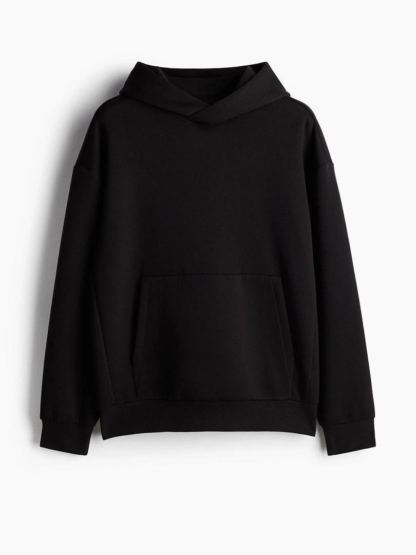 Elevate your casual wardrobe with this timeless black pullover hoodie. Crafted from a premium cotton blend fabric, this sweatshirt offers exceptional comfort and durability for everyday wear. The classic design features a spacious kangaroo pocket in front, perfect for keeping your hands warm or storing small essentials. The hood includes adjustable drawstrings for a customised fit and added protection against the elements. The comfortable regular fit allows for easy layering while maintaining a smart silhouette. The ribbed cuffs and hem ensure the hoodie stays in place whilst providing a snug feel. This versatile piece pairs effortlessly with jeans, joggers, or casual trousers, making it an essential addition to any casual collection. The durable construction and quality stitching ensure long