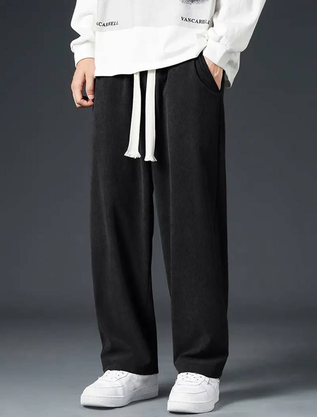 Povaxpo Solid Men Black Track Pants