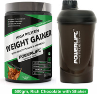 POWERLIFT Weight Gainer with Shaker, added Multivitamin & Minerals Weight Gainers/Mass Gainers (500 g, Rich Chocolate)