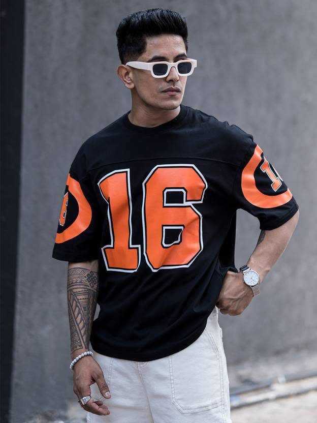 Men Printed Round Neck Cotton Blend Black T-Shirt