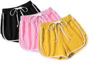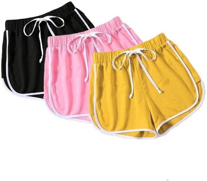POWERmerc Solid Women Pink, Yellow, Black Regular Shorts