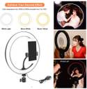 PRESENTING-:Upgraded ring light with strain relief to prevent light and cable from damaging, while other peers can not reach;10 inch Selfie LED Ring Light with Ball Head Mobile Holder and Cell Phone Holder and 3 Light Mode, Dimmable Desktop LED Makeup Ring Light Kit for Live Streaming, Video LED Ring Fill Light Dimmable for YouTube Videos, TikTok Videos Selfie Makeup with Android Phone, 3 Colors Mode & 10 Level Brightness. Dimmable Ring Light 3 colors lighting mode white, warm yellow, and warm white. Each lighting mode has 11 adjustable brightness to choose from, meet all your needs in different circumstances. It is the perfect daimmable daytime lighting to take away all the unflattering shadows. USB Powered Works with most devices that support USB port, like a laptop, PC, power bank, USB charger, AC adapter, and etc. Easy control on cord to power on/off or switch to the lighting mode you prefer. All Tripod Compatible With a 1/4" screw interface at the bottom of the ring light, you can mount the ring light on any kinds of the tripod, The adjustable ball head allows you to find the perfect angle to light your subject, making your photograph or live streaming easily. You will be able to make videos at night or take great selfie picture in dark areas with this ring light.3 colors lighting mode cool white, warm white, and day light. It is the perfect dimmable daytime lighting to take away all the unflattering shadows. 2-in-1 design combines the mobile phone holder and the self-timer lamp, using the universal adjustment metal goose neck. 10" Inche Big LED Selfie Ring Light Video Light, Photoshoot camera Flash Light