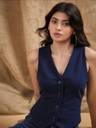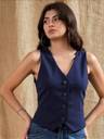 Elevate your layering game with our chic Women's Waistcoat .the perfect blend of classic tailoring and modern edge. Crafted from a premium fabric blend, this waistcoat features a timeless vertical stripe pattern that elongates the silhouette for a flattering fit.Designed with a tailored cut, a sleek V-neckline, and a button-down front, it’s ideal for both professional and casual settings