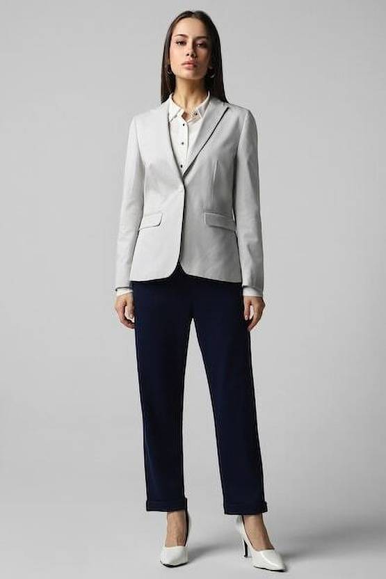 PP TRENDS Solid Single Breasted Casual Women Blazer (Grey)