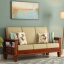 PR FURNITURE Premium Quality Sheesham Wood For Living Room |Cushion :- Cream Fabric 3 Seater Sofa (Finish Color - Honey Finish, DIY(Do-It-Yourself))