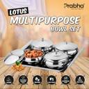 PRABHA High Quality Stainless Steel Lotus Bowl Set With Tray & Lid Set of 4 Tray Serving Set (Pack of 4)