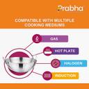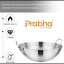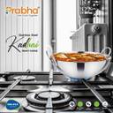 PRABHA Prima Triply Finish, Heavy Gauge Kadhai Without Lid, Kitchen Wok, Silver Kadhai 24 cm diameter 2.4 L capacity (Stainless Steel)