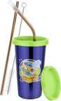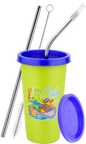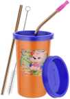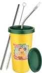 PRABHA Stainless Steel Tumbler with Lid Cap 370 ml 1 pcs with 2 Straws 1 Brush Green Stainless Steel Tumbler (370 ml)