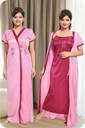 Women's Satin Nighty Set of 2 – Full Length Night Dress with Robe, Elegant Embroidered Sleepwear for Women