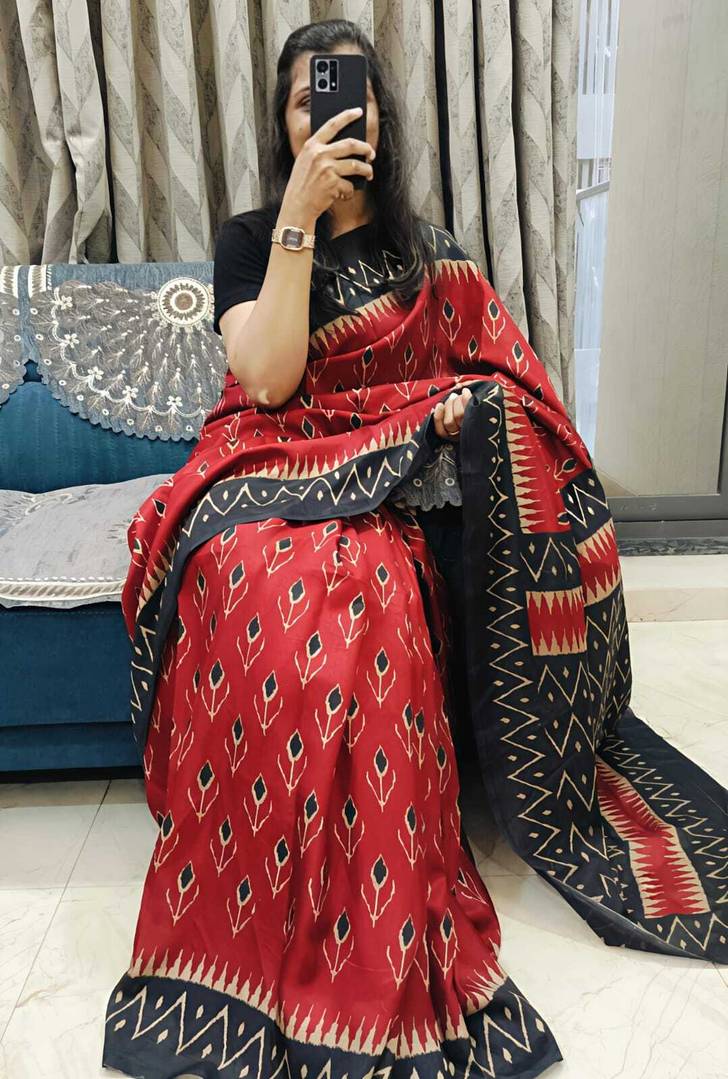 Printed Bollywood Art Silk Saree (Red)