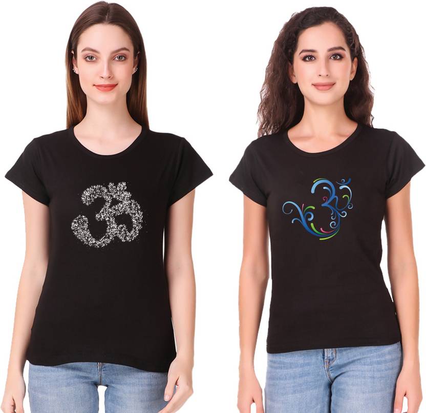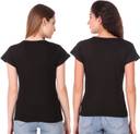 Pack of 2 Women Graphic Print Round Neck Cotton Blend Black T-Shirt