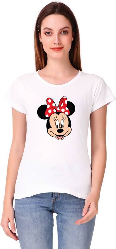 Prabhu Bhakti MICKY MOUSE rinted Women's Casual Round Neck Short Sleeve Solid Basic T shirt | black Top for women |Cotton T shirt | Top for women | Devotional T shirt Women Printed Round Neck Cotton Blend White T-Shirt