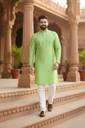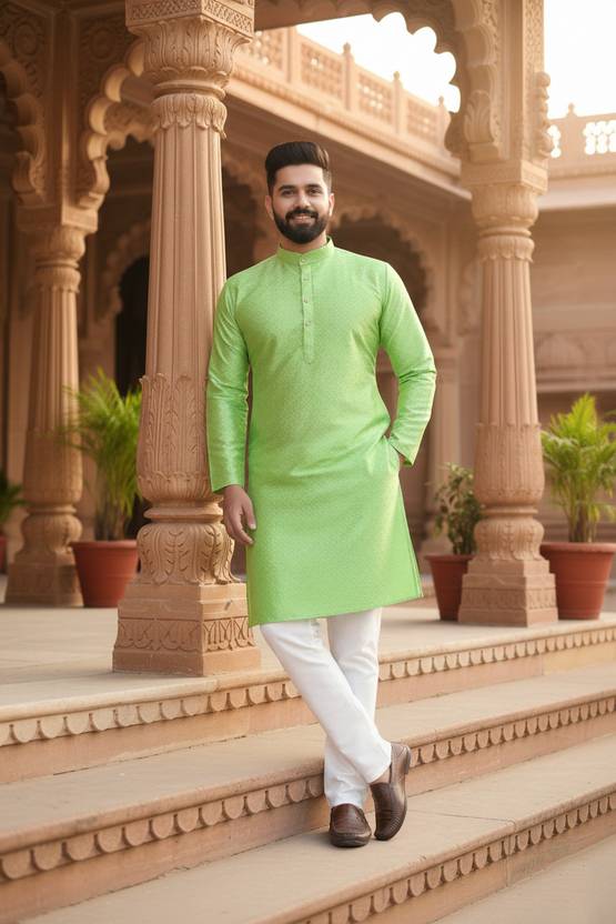 Prabodham Men Woven Design Straight Kurta (Green)