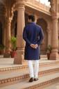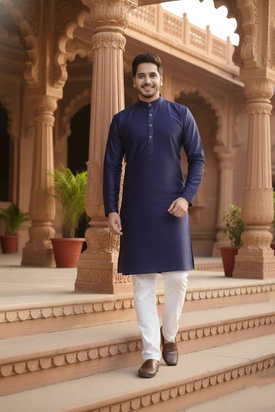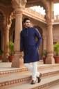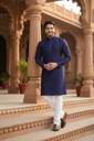Prabodham Men Woven Design Straight Kurta (Dark Blue)