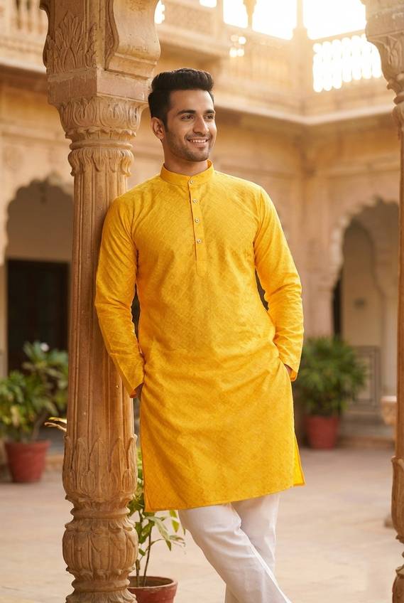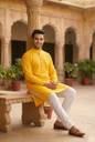 Prabodham Men Woven Design Straight Kurta (Yellow)