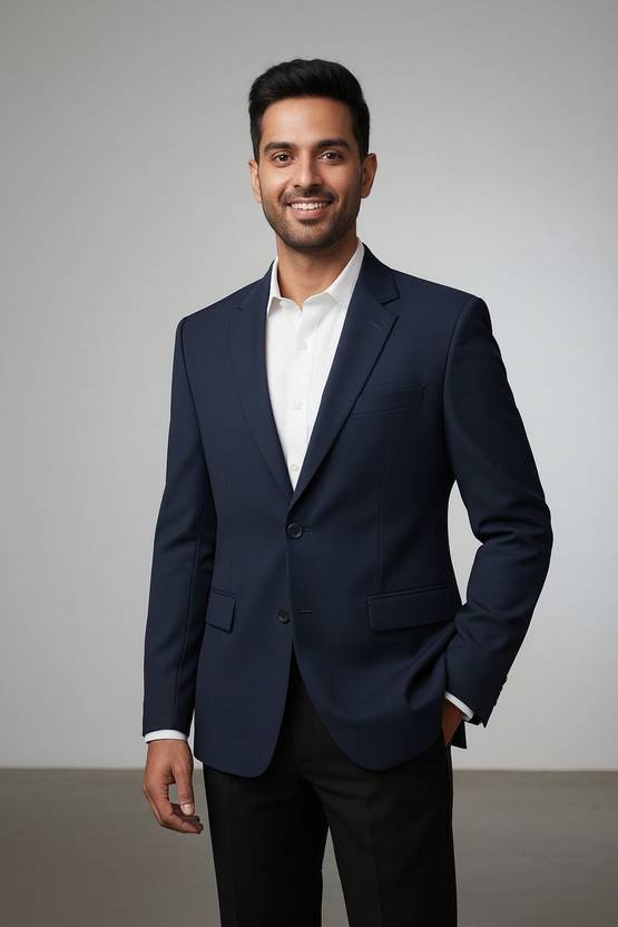 Pradeep Men Solid Single Breasted Formal Blazer  (Dark Blue)