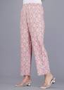 The palazzos come with an elastic waistband for added comfort. It ensures a flexible fit while providing an elegant drape. The mid-waist design complements the relaxed fit of the bottom, making it an excellent addition to any casual or formal outfit. Its relaxed cut makes movement effortless.