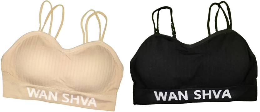Pack of 2 Women Cami Bra Lightly Padded Bra (Black, Beige)