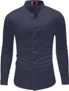 PRAIZY Men Solid Casual Dark Blue Shirt