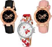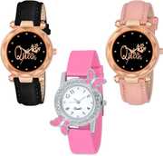 New Stylish Combo Of 3 Queen Printed Dial Black & Pink and Black Butterfly