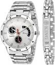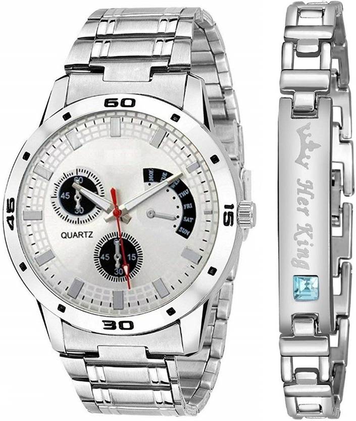 Silver Dial Adjustable Length Stainless Steel and Diamond King Bracelet