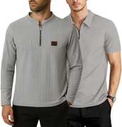 PRAIZY Solid Men Zip Neck Beige T-Shirt