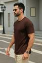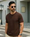 PRAIZY Striped Men Round Neck Brown T-Shirt