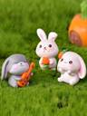 prajna 1 Set Rabbits Miniature Set for Home Decor Decorative Showpiece - 4.5 cm (Resin, Multicolor)