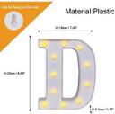 Light Source: LED, Battery Required (not included). Made of Plastic, Requires 2 AA batteries, not included, can be hung (has keyhole slot in back for easy hanging) on walls, mantels or placed on top of a reception table during your event or celebration. WIDELY USED - Marquee letters, Light up your favorite words for special occasion, event, or home decoration. Suitable for home, birthday party, outdoor, bars, cafes decorated, Create a romantic and warm atmosphere, It is also a good gift for your Kids, Friends and Families. DIY Combination - 26 alphabetic character and 0-9 numbers LED lights, such as for arbitrary combination into I LOVE U, HOME, MARRY ME, U&M, etc, just play your imagination. Fashion LED subtitles lamp, Long LED lamp life, long-term use is not hot. get the best decorative effect.