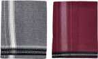 Prakasam Cotton Premium quality Mens Kerala Style Thalapathi Border Single (1.28X2.00 mtrs) -Dhoti-kerala Single mundu (Pack of 2 dhoties)-Green:Kaavi Solid Men Dhoti