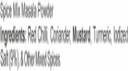 Coriander, Red chili, coconut iodized salt (6.5%), rice, refined cotton seed oil, mustard, lichen, cumin, turmeric, bey leaf, black pepper, cassia bark (TAJ), clove, fenugreek, kasoori methi, black cardamom, & other mixed spices