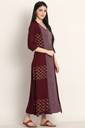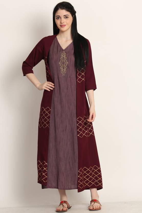 Women Embroidered Cotton Rayon A-line Kurta (Brown)