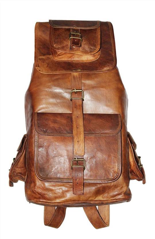 material-goat leather size-22"(L),11"(W),7"(D) total 1 compartments inside and 1 zipper inside the bag with green colour canvas four pocket outside the bag.a bag that gives you a traditional as well modern look.This Multipurpose backpack perfect for college going guys.made by experianced manufacturer with their all hark work.