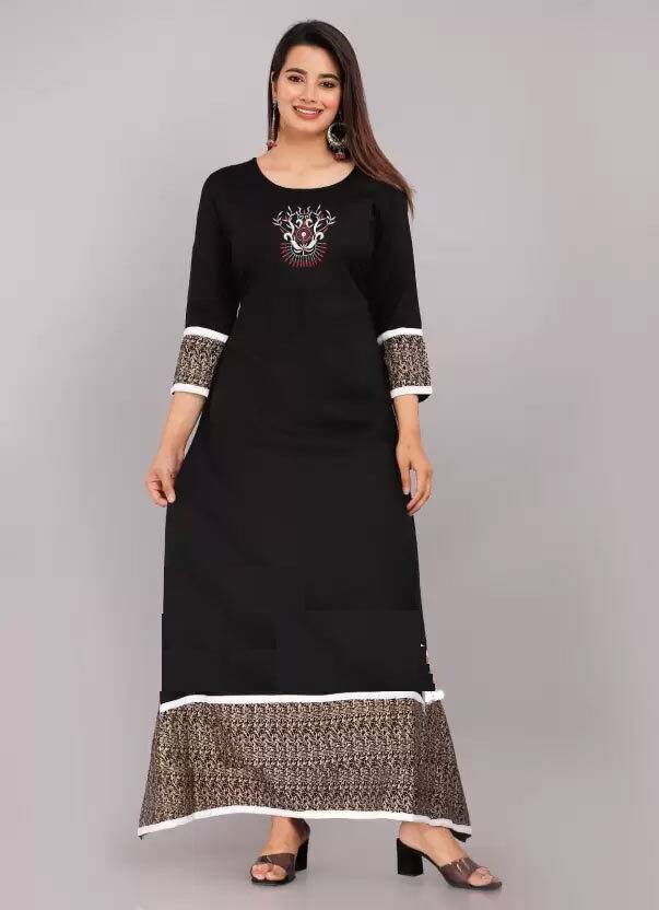 Embroidered Cotton Rayon Stitched Anarkali Gown (Black)