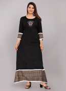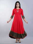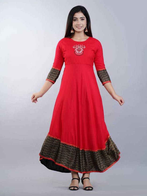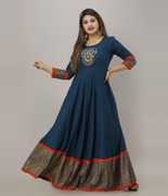 Pranu Creation Silk Embroidered Anarkali Long Gown Delicacy is key in this soft, flowy material which makes it a boon to strut around freely without having to worry about it weighing you down, especially if the occasion requires you to be on the go. The blouse gives a welcome contrast to the embroidered skirt. Can be stitched long-sleeved with tassels or short, as suitable for the occasion.From weddings to festivals, parties to poojas. Pair it with chunky, bright earrings and a gold clutch or high heels and a striking nose pin. While it makes it easy to float around in the soft fabric, special attention is required during wash. Dry clean is ideal but gentle hand wash can also be applied.A lightweight, velvety and comfortable weave, the silk fabric has a delicate feel to the touch and a strong, sturdy, smooth wrap with a flexibility that makes it appropriate for an extended variety of garment uses.