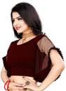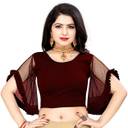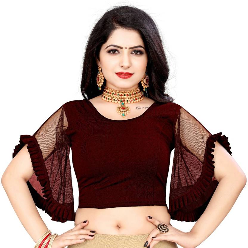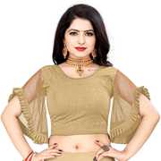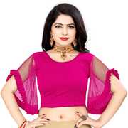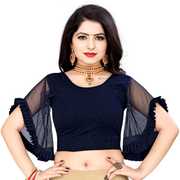 Fabric: Cotton Lycra Blend | Pattern: Blouse with Net Sleeve& Frill | Neck: Round Neck | This beautiful blouse can be styled with any color of Saree. You Can expect minor color variation due to various reasons.