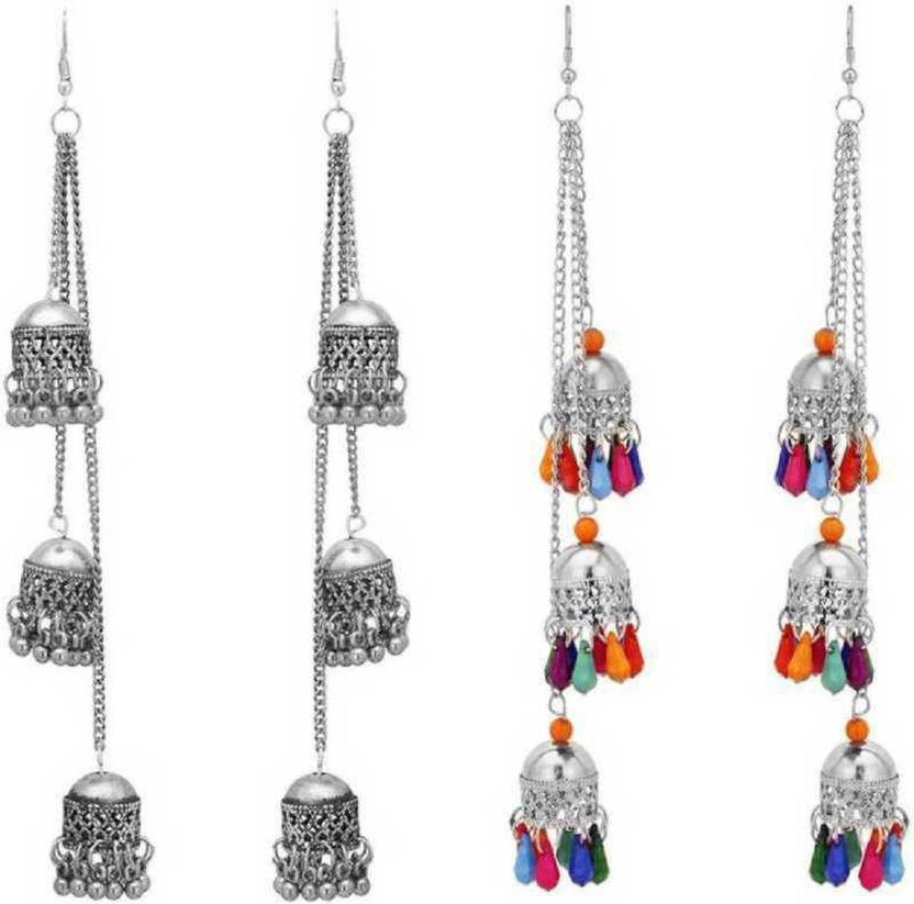 Combo of 2 Designer Afghani Kashmiri Tribal Long Earrings