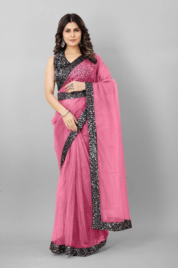 RUCHKET Embellished Bollywood Net Saree (Pink)