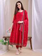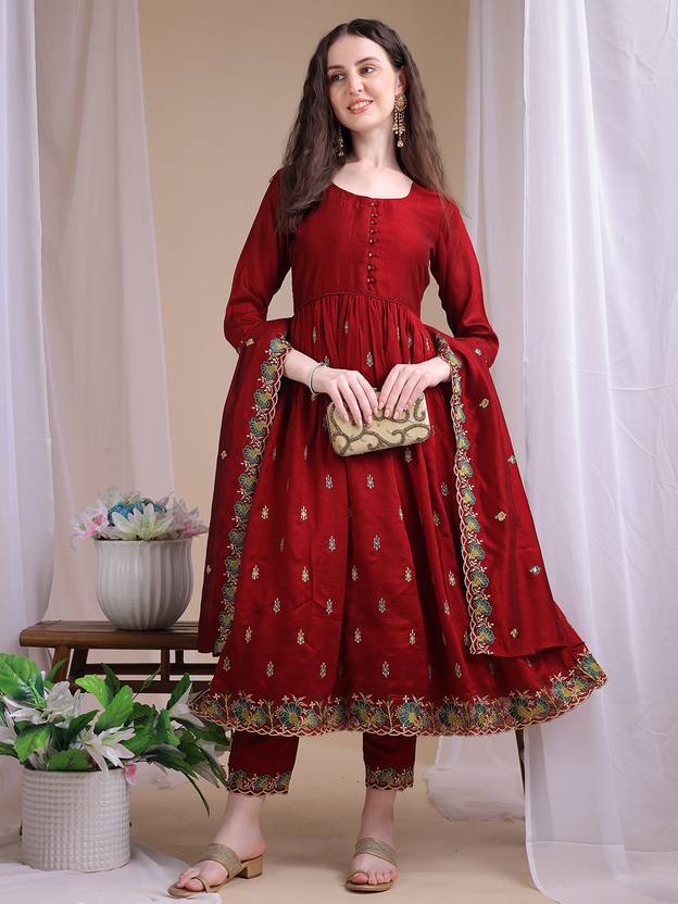 Fit Type : Anarkali Kurta Fabric: Rayon and Pant Fabric: Rayon and Dupatta Fabric: Rayon Kurta Style: Anarkali, Length: Calf Length , Sleeves: 3/4 This set includes: 1 Kurta and 1 Pant and 1 Dupatta, Occassion: Traditional wear, Casual Wear, party wear, evening wear, Daily wear,kurta set for women, Women Kurta,Women Kurta Sets Kurtis, Women Kurta Pant