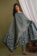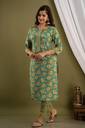 Fabric: Cotton, Pattern: Printed, Sleeves: 3/4 Sleeve, Neck: Round, Kurti Length: Knee Length, Pant Length: 38 Inch, Dupatta Length: 2.25, Sales Package: 1 Kurta 1 Pant 1 Dupatta