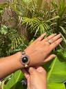The black sapphire is known for its deep, captivating hue and its association with strength, wisdom, and protection. The antique design adds an extra layer of charm, blending classic craftsmanship with contemporary flair. Each sapphire is carefully set to create a piece that not only catches the eye but also tells a story of timeless beauty.