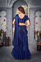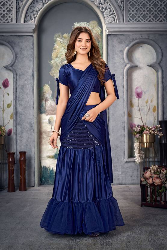 Comfortable and Stylish: Experience the best of both worlds – comfort and style. The Navy Blue Net & Satin Ready To Wear Saree by Praveena Designer ensures you look and feel your best at every event.