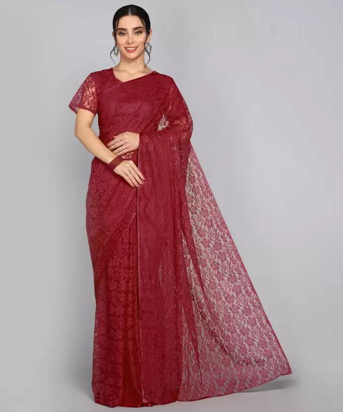 PRAVISHRI TRENDS Ready to Wear Self Design Bollywood Jacquard Saree (Maroon)