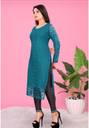 Featuring embellished pattern, this women's kurta is adorned with detailed designs that can add a refined and sophisticated touch. And, the intricate embellishments can enhance the visual appeal of this kurta, making it a stylish choice for a range of casual occasions. Hence, this decorative feature can add a layer of elegance without overwhelming the overall simplicity of the design.