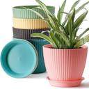 Prayati Plastic Round Flower Pots for Home Planters, Terrace, Garden Etc | Pack of 05 Plastic Vase (6 inch, Multicolor)