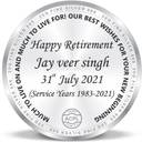 HAPPY RETIREMENT DAY 20GM COIN PERSONALIZATION DETAILS : "WE TAKE ONLY PRE-PAID ORDERS" Complete your order on Amazon.in, Please send us the personalisation details on WhatsApp @8445705021 or Email us at online@acplsilver.com with following details: "Amazon Order Number, Name, Date & Image " that you want on the product. This design is machine printed and is not a sticker.