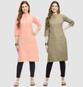 PREEGO Pack of 2 Women Solid Pure Cotton Frontslit Kurta (Multicolor)